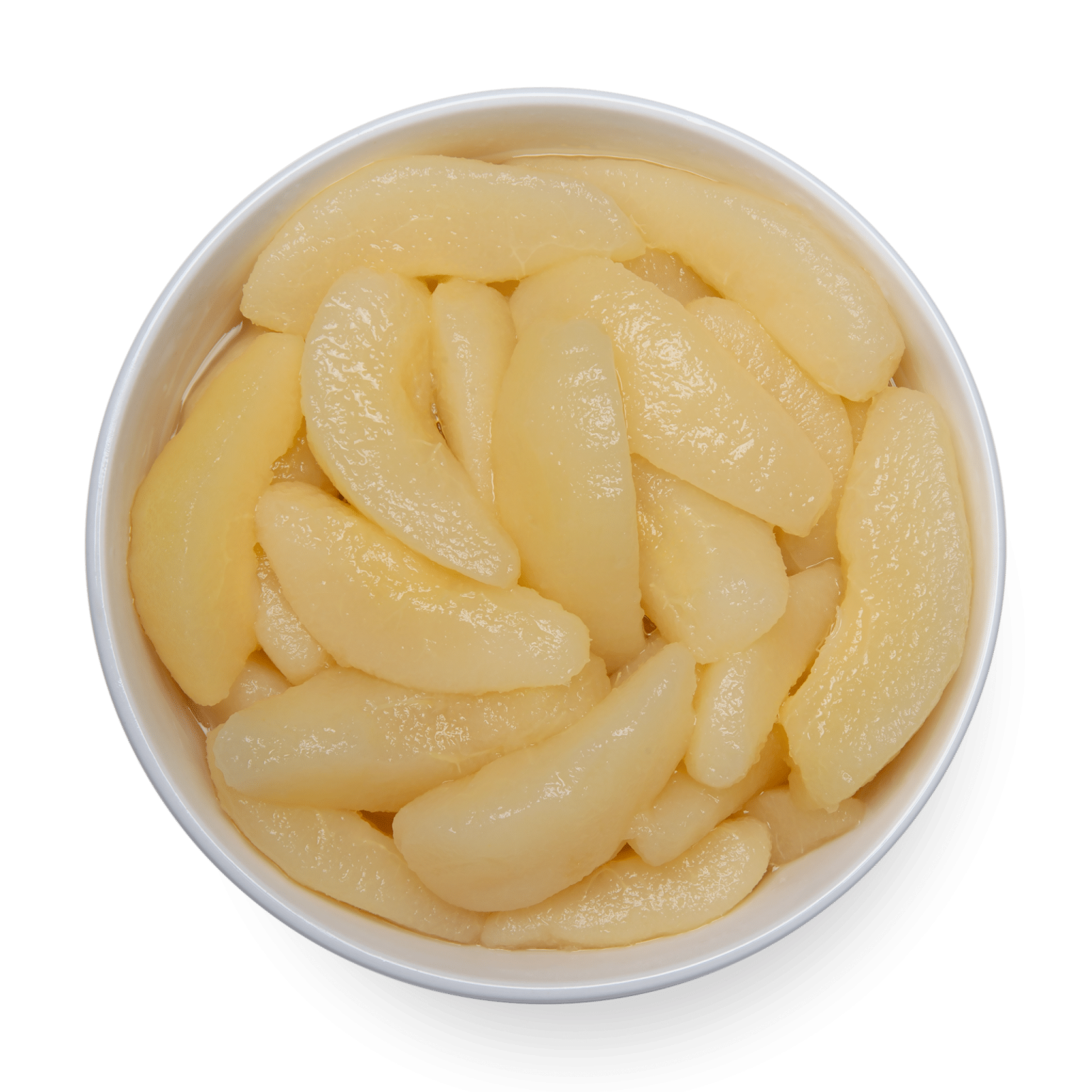 Irregular sliced Bartlett pears in light syrup shall be prepared from Bartlett pears that have been washed, peeled, cored and hand sorted for quality.