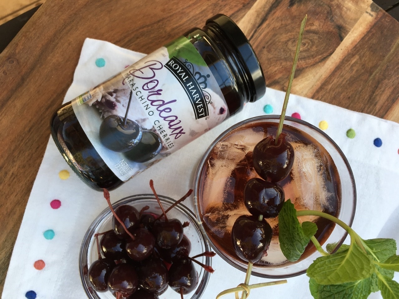 - Serve over ice garnished with more cherries and fresh mint.