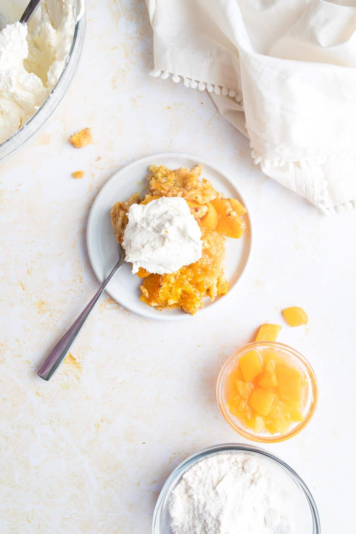 A sweet, warm, gooey recipe that features canned peaches so you can skip the extra work of boiled and peeling fruit.